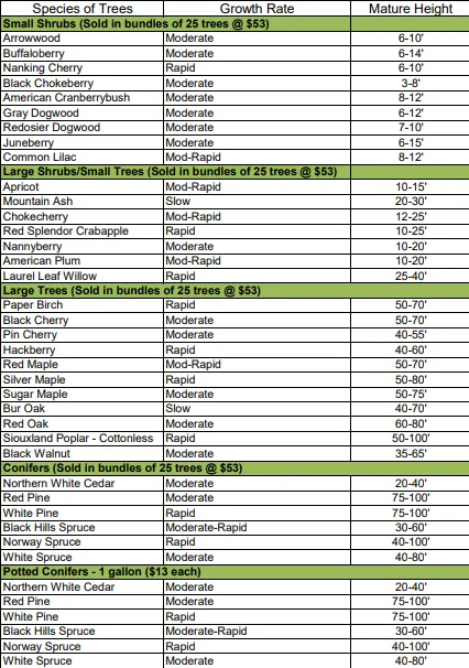 ** Please call the office for updated list or current availability as species are selling out fast!** 320-763-3191 x3